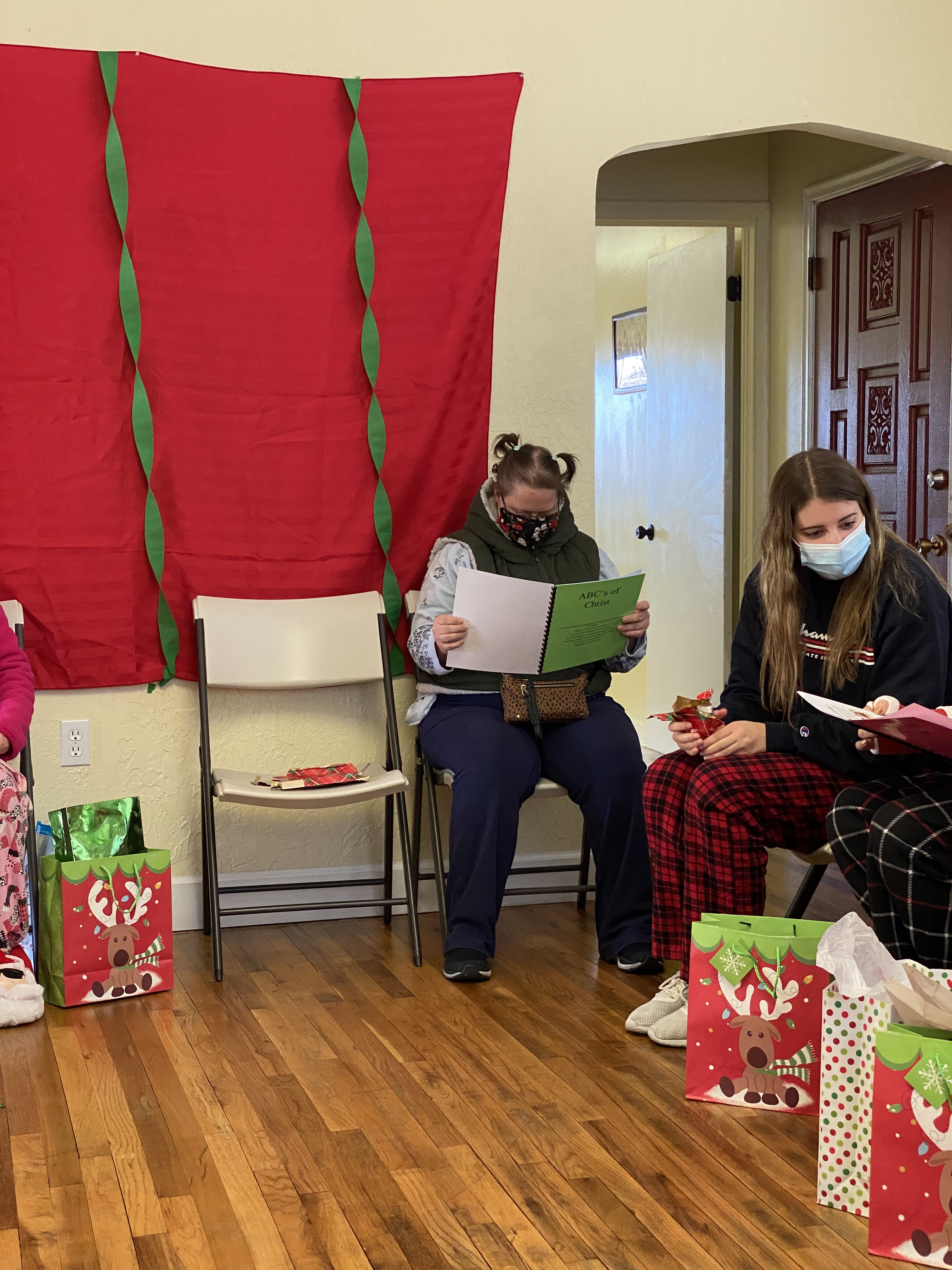 Our annual Christmas party is the highlight of the season for us and the students. This year, to make add some extra fun, the students came dressed in their Christmas pajamas. Everyone looked so cute! Because Christ is the reason for the season, we started off the party with each student placing their ornament on the tree (which was beautifully decorated by Jane Fenton) and sharing what gift they were going to give to the Savior this year. Their gift is something they can do to improve their lives that helps them to become more Christlike and follow His commandments that He gave while here on this earth. These were the beautiful gifts they are striving to give this year: